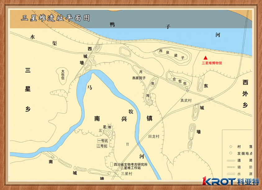 三星堆古遗址分布面积12平方公里,距今已有5000至3000年历史,是迄今在西南地区发现的范围最大、延续时间最长、文化内涵最丰富的古城、古国、古蜀文化遗址。现有保存最完整的东、西、南城墙和月亮湾内城墙。三星堆古遗址被称为20世纪人类最伟大的考古发现之一,昭示了长江流域与黄河流域一样,同属中华文明的母体,被誉为“长江文明之源”。